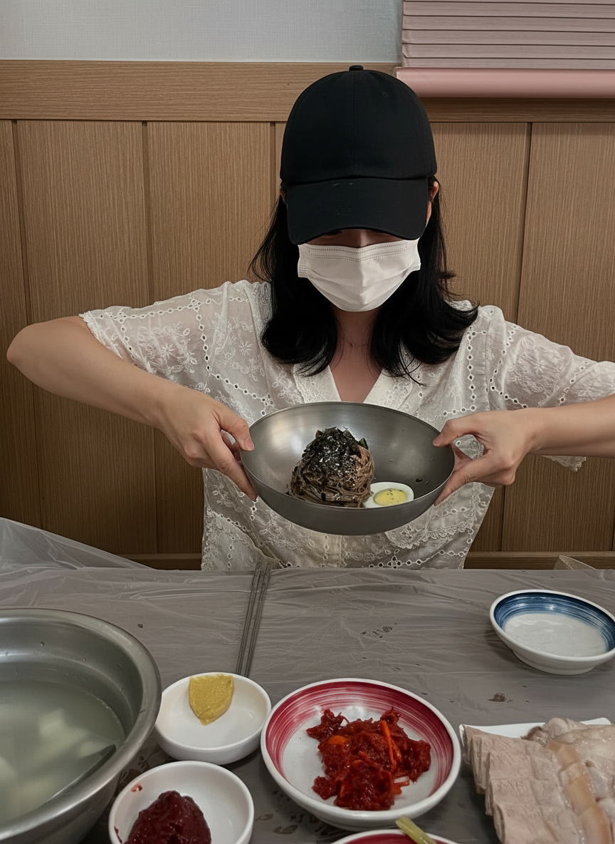특히 갓 삶아 잡내 없이 고소했던 편육이랑 같이 먹으니 정말 꿀조합! 마지막으로 시원한 동치미 국물에 말아 먹는 순간, 완벽 그 자체였습니다. 👍